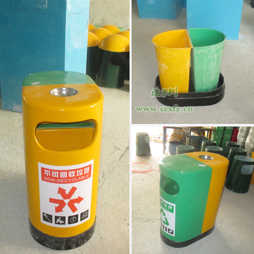 深圳寶安沙井實(shí)驗(yàn)學(xué)校,是欣方圳老顧客了。按照之前訂購的玻璃鋼垃圾桶樣板生產(chǎn),發(fā)實(shí)物照給工廠的廠長確認(rèn)。A21玻璃鋼環(huán)保分類垃圾桶的規(guī)格為:680*400*850mm.這款垃圾桶來頭可不小哦,它是獲得了專利外觀設(shè)計(jì)的玻璃鋼垃圾桶。每個產(chǎn)品是經(jīng)過的嚴(yán)格生產(chǎn)程序制造出來,貼上產(chǎn)品合格證,符合企業(yè)高品質(zhì)標(biāo)準(zhǔn)。玻璃鋼垃圾桶一邊嫩綠,一邊中絡(luò)黃,底座黑色,外加一個煙灰缸巧妙的搭配,簡潔、美觀。桶蓋/桶身采用FRP玻璃鋼復(fù)合材料制造,具有防腐、防盜、防生銹、易清潔等特點(diǎn),表面涂層采用高分子耐老化膠衣涂層,色澤明快、持久。