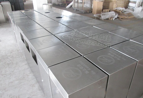 作為一家知名購物中心,采購不銹鋼垃圾桶要求極高。垃圾桶的選擇不容馬虎,兩者搭配得融入購物中心文化。我們欣方圳公司業務部人員,根據包頭茂業百貨來的圖樣,大規模的生產一款C60不銹鋼果皮箱。本款采購的不銹鋼果皮箱規格為:350*350*720mm,顏色為砂光。采用201#不銹鋼厚度1.2mm,其中8個帶煙灰缸,42個不帶煙灰缸,內桶為鍍鋅板。正面蝕刻茂業百貨字樣及標識。此款不銹鋼垃圾桶頂上開門,頂上蓋子固定活動。外部光滑明亮,簡單大方的方形設計,高貴不失風度。結合包頭茂業百貨購物中心,讓更多的顧客有愉快的心情購物。