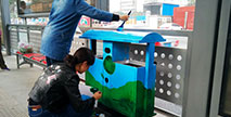 藍天白云清新美麗,可愛卡通天真童趣。鄭州快速公交站臺內(nèi)兩個原本普普通通的環(huán)保果皮箱,經(jīng)過一番裝扮與改造,成為了兩個別具藝術氣息的環(huán)保果皮箱。這兩個環(huán)保...