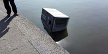 土豪垃圾桶下湖游泳