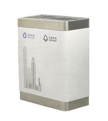 深圳新標準城中村街道社區(qū)不銹鋼五分類垃圾桶由有害垃圾、玻璃、金塑紙(為金屬、塑料、紙張的簡稱)、廚余垃圾、其他垃圾這5分類不銹鋼垃圾桶組合而成。其中金塑紙、其他垃圾日常產生量較大,所以分類收集容器也