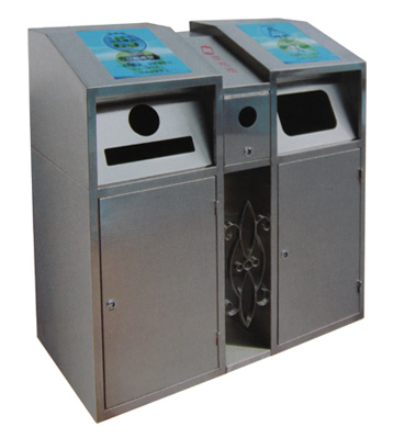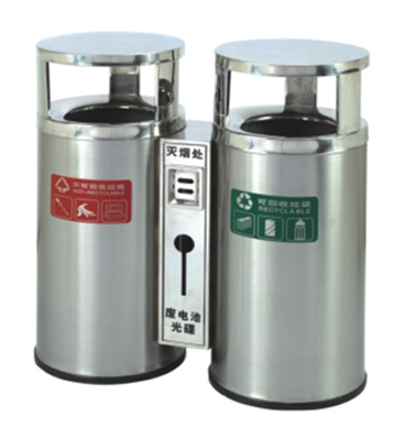 深圳新標準城中村街道社區不銹鋼五分類垃圾桶由有害垃圾、玻璃、金塑紙(為金屬、塑料、紙張的簡稱)、廚余垃圾、其他垃圾這5分類不銹鋼垃圾桶組合而成。其中金塑紙、其他垃圾日常產生量較大,所以分類收集容器也