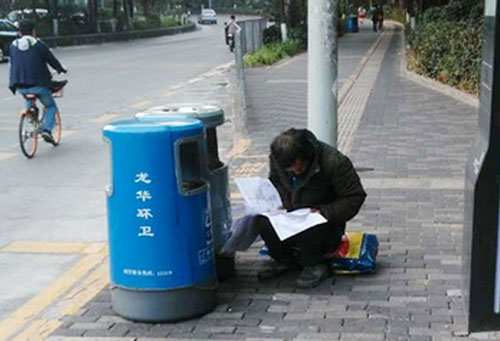 勵志!拾荒男子垃圾桶旁刻苦學習