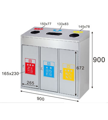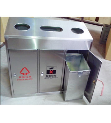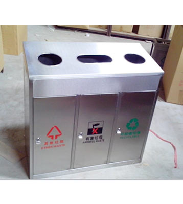 • 產品材質:三分類不銹鋼垃圾桶采用201#,202#,304#優質不銹鋼材料模壓成型,堅固耐用,不易破損;耐火安全,抗高低溫,適合各種惡劣氣候條件;金屬亮澤,高雅美觀,廣泛適用于各種場所;內外表面光潔,減少垃圾殘留,易于清潔;配置鍍鋅板內桶,便于垃圾清倒;