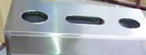 欣方圳三分類不銹鋼垃圾桶,采用優質不銹鋼無縫焊接成型,邊角精細打磨,安全系數高。