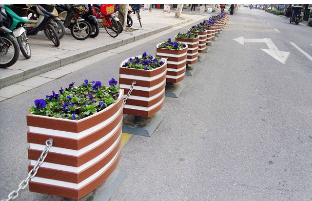 • 產品材質:塑木花箱指木塑復合材料,經擠壓、模壓、注塑成型等塑料加工工藝,生產出的型材制作而成的花箱。