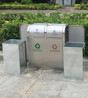 廣州高校不銹鋼環保分類垃圾桶生產圖