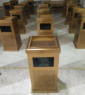 E242垃圾桶電鍍玫瑰金工廠批量生產(chǎn)圖