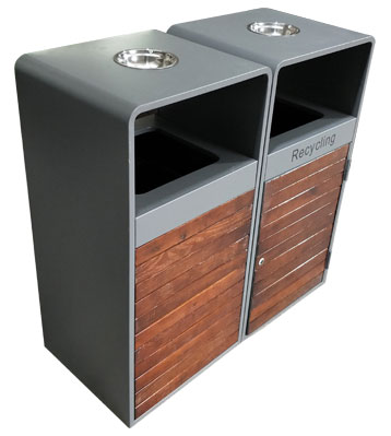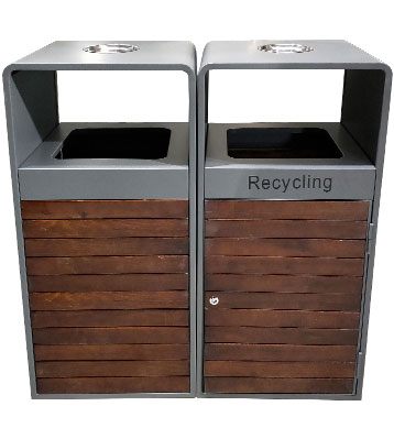欣方圳戶外鋼木分類果皮箱批量生產圖