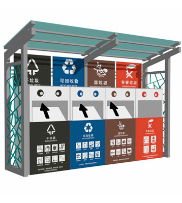 設(shè)有擋雨棚,可配備垃圾箱信息顯示屏、防水照明燈、廣告屏,進(jìn)行地面硬化。對(duì)社區(qū)玻金塑紙可回收物,其他垃圾,廚余垃圾,有害垃圾等生活垃圾定時(shí)定點(diǎn)投放收集.