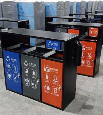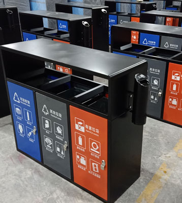欣方圳戶外三分類垃圾桶工廠批量生產圖