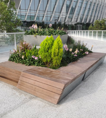 深圳濱海廊橋是“空中、地面、地下”三位一體城市連廊,定制的不銹鋼種植池座椅擺放于各景觀節點、特點區段、主題專區等公共空間景觀...