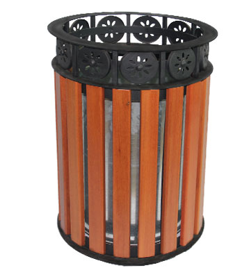 欣方圳公園花邊鋼木單桶垃圾桶產品展示圖