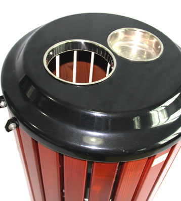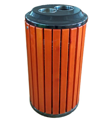 戶外街道鋼木單桶垃圾桶戶外擺放效果圖: