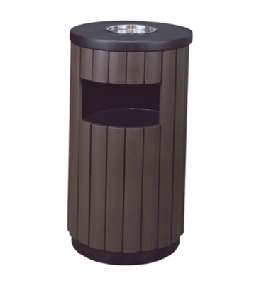欣方圳仿木烤漆鋼木單桶垃圾桶戶外擺放圖